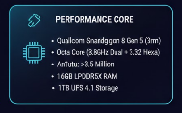 Memory: Up to 16GB LPDDR5X RAM | 1TB UFS 4.1 storage.