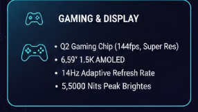 Display: 6.59-inch 1.5K AMOLED, 144Hz adaptive refresh rate.
