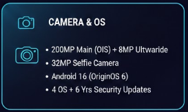 Main Camera: 200MP (OIS) + 8MP Ultra-wide.