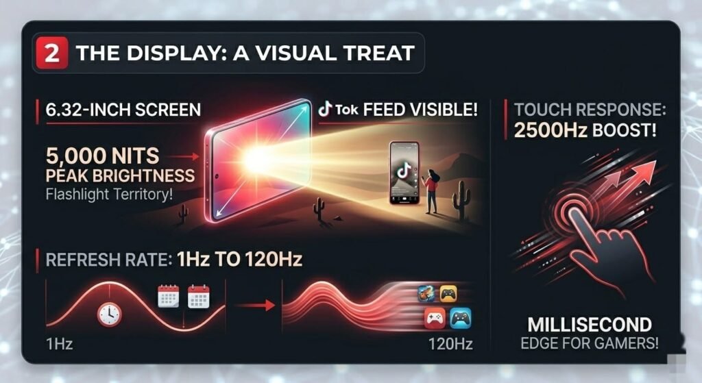 • 5,000 NitsΒ Peak Brightness (Flashlight territory).