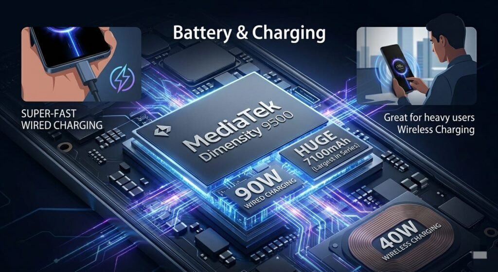 – Processor: MediaTek Dimensity 9500 (flagship 3nm chip)